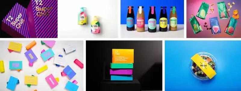 其实从2018年很多包装设计都运用了对比色的设计方向,这个趋势主要是运用大胆的强对比色,去夸张的突出产品的调性,可以看到像营养快线的新包装和王老吉的包装设计都用到了撞色的配色,这个配色能产生强烈的对比度,从而突出包装在展示效果中的冲击力。